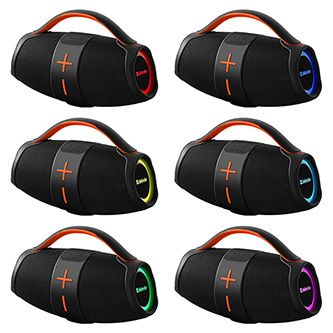 Reproduktor je vybaven vícebarevným LED podsvícením se 6 režimy svícení, které vytváří skvělou atmosféru při poslechu. Pokud si přejete klidnější režim nebo chcete šetřit baterii, můžete podsvícení jednoduše vypnout. Pogumovaný plast v kombinaci s textilním povrchem působí elegantně, zároveň je ale praktický – neklouže a odolává drobným nárazům. Díky tomu je ideální i pro použití venku.