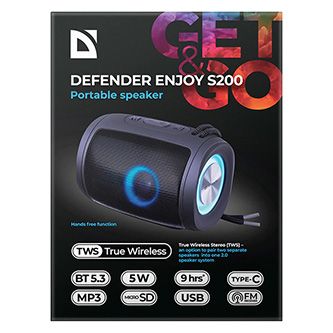 Defender reproduktor ENJOY S200, Li-Ion, 1.0, 5W, černý, regulace hlasitosti, přenosný, LE 310 Kč