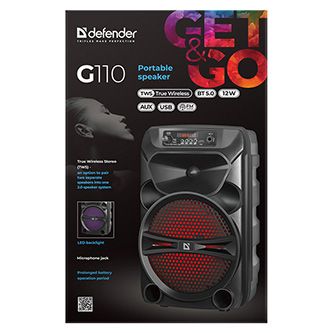 Defender reproduktor G110, Li-Ion, 1.0, 12W, černý, regulace hlasitosti, LED podsvícení, B