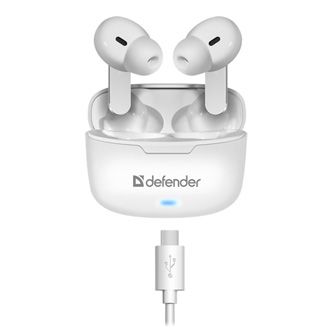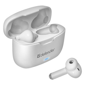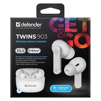 Defender Twins 903, sluchátka s mikrofonem, ovládání hlasitosti, bílá, špuntová, BT 5.0, T