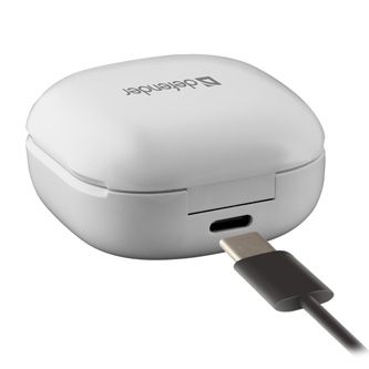 Defender Twins 910, sluchátka s mikrofonem, ovládání hlasitosti, bílá, špuntová, BT 5.1, T