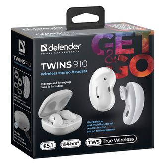 Defender Twins 910Bezdrátová bluetooth TWS sluchátka s mikrofonem