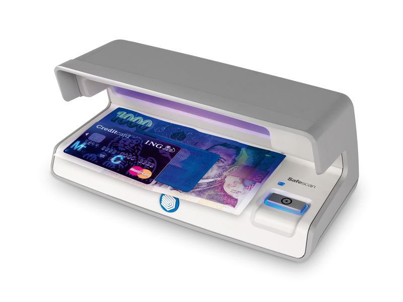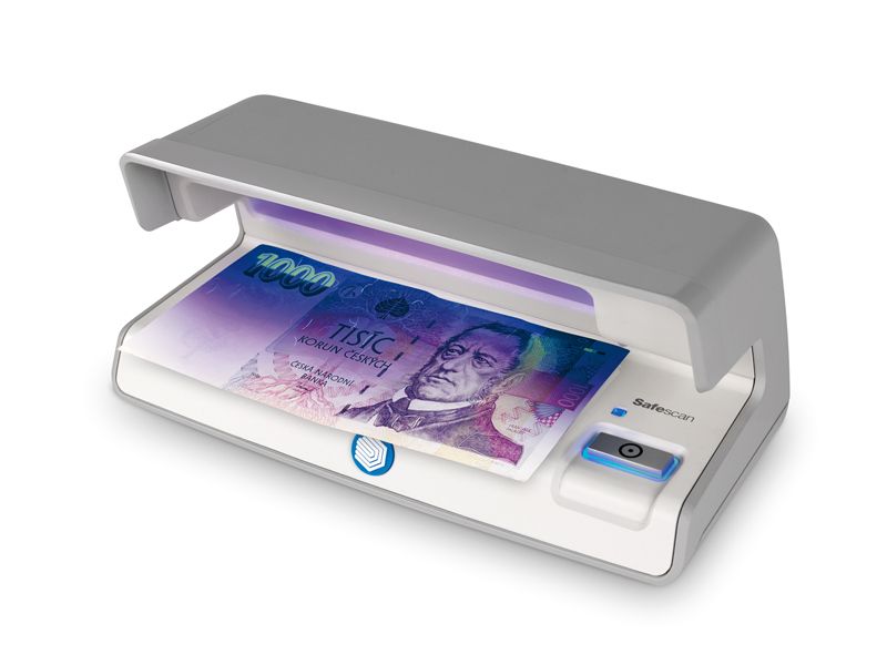 UV detektor Safescan šedé barvy k ověření pravosti bankovek, pasů, občanských průkazů, kreditních karet a dalších dokumentů. Automatické zapnutí/vypnutí.- UV detektor k ověření pravosti bankovek, pasů, občanských průkazů, kreditních karet a dalších dokumentů.