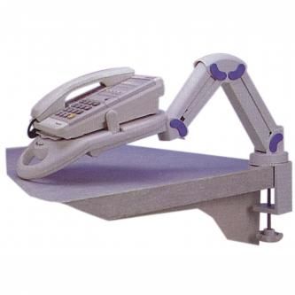 Držák telefonu na stůl, výsuvný, otočný, polohovatelný, šedý plast, délka ramene 50cm
