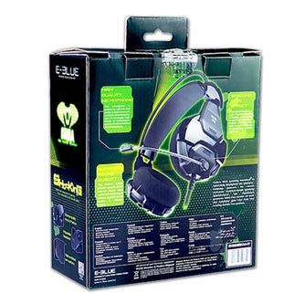 Pro zvýšení atraktivity sluchátek bylo přidáno decentní podsvícení detailů na čelence a loga E-Blue na obou náušnících.