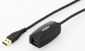 USB kabel Ednet prodlužovací typu A, 5m - aktivníUSB 2.0 Active Extension "Repeater" Cable. To extend the length of a USB Cable by additional 5 m to max. 30m*. High transfer rate up to 480 Mbps. True Plug & Play, no external power required. USB plug A to USB socket A. Length: 5,0 m. *This ednet USB 2.0 Extension Cable allows an USB device to have its cable length extended up to additional 25m by serially connecting 5 x 5m extension cables to a standard 5m USB cable.