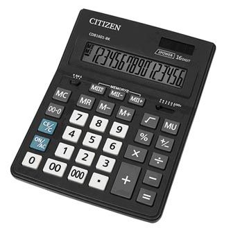 | Stolní kalkulačka: 16 mísný displej 4 tlačítka paměti : MC, MR, M+, M- výpočet marže [MU] Zaokrouhlování Odmocnina [?] Dvě paměti [MII] Změna [+/-] Desetinná čárka Procenta [%] Dvojitá nula [00] Dvojí napájení: battery & solar |