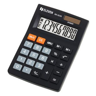 | Stolní kalkulačka: 10 místný displej 3 paměťové klávesy: MRC, M+, M- Odmocnina [?] Změna [+/-] Procenta [%] Dvojí napájení: battery & solar |