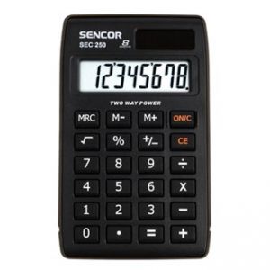 | Stolní kalkulačka: 10 místný displej 3 paměťové klávesy: MRC, M+, M- Změna [+/-] Mazání Procenta [%] Dvojitá nula [00] Dvojí napájení: battery & solar |