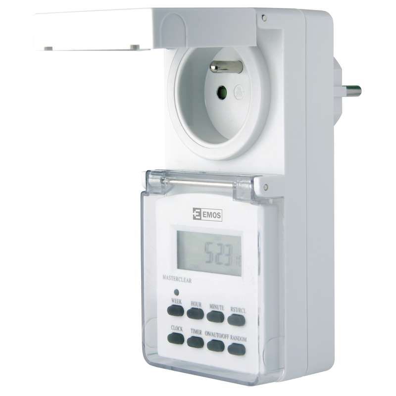 Časovač - digitální spínací zásuvka venkovní IP44Tato digitální spínací zásuvka, nebo-li časovač, je ideální pro nastavení zapnutí a vypnutí jakýchkoliv elektrických spotřebičů. Je spolehlivý i ve Vaší nepřítomnosti.