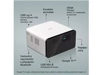 Automatická korekce lichoběžníku, vestavěný reproduktor, Chromecast, Vyhledávání Google, Horizontální a vertikální korekce lichoběžníkového zkreslení, okamžité zap./vyp., Quick Corner