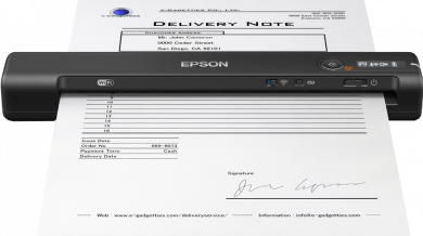 Mobilní bezdrátový skenerDíky nejmenšímu mobilnímu skeneru společnosti Epson, který má připojení přes rozhraní Wi-Fi a je napájen bateriemi, můžete dokumenty jednoduše skenovat do prohledávatelného souboru PDF, ať už jste kdekoli.