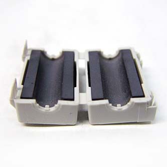 Feritový filtr pro odrušení kabelu- Feritové jádro v plastovém obalu pro montáž zaklapnutím na kabel (pro potlačení rušivých interferencí na kabelu)