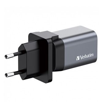 GaN cestovní nabíječka do sítě Verbatim, USB 3.0, USB C, šedá, 35 W, vyměnitelné vidlice
