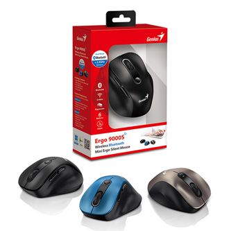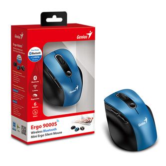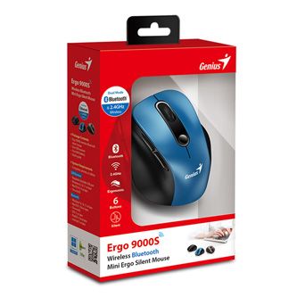 Genius Ergo 9000S, Myš, bezdrátová, optická, 2400DPI, 6 tlačítek, Bluetooth, 2.4GHz, USB, modráGenius Ergo 9000S