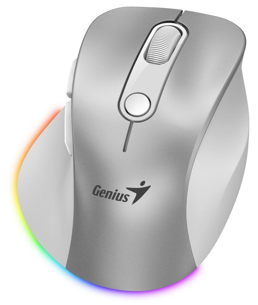 Genius Ergo 9000S Pro Myš, bezdrátová, optická, 2400DPI, 6 tlačítek, BT, 2,4GHz, USB-C nabíjení, tichá, 7barevné podsv.,stříbrnáGenius Ergo 9000S Pro