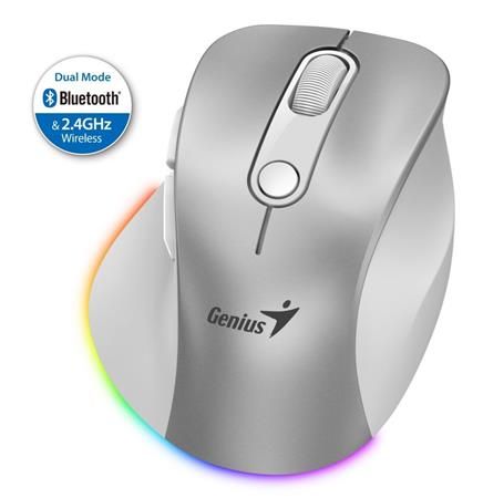 GENIUS Ergo 9000S Pro Silver/ duální Bluetooth + 2,4GHz/ 2400 dpi/ bezdrátová/ 6tlačítková