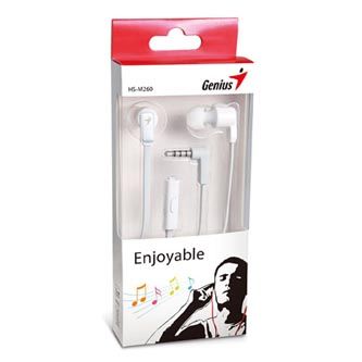 GENIUS, HS-M260, sluchátka s mikrofonem, bez ovládání hlasitosti, bílá, sportovní, 3.5 mm