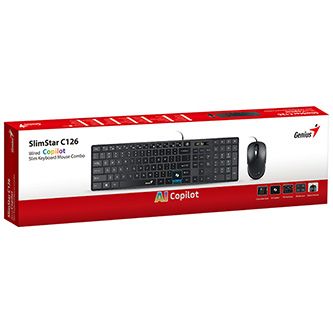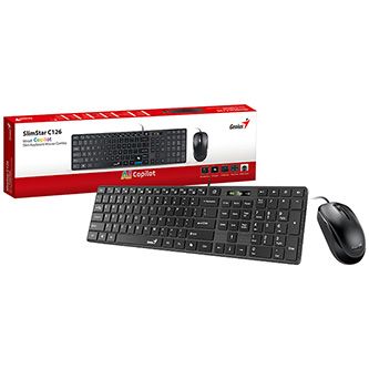 Genius SlimStar C126 COPILOT sada klávesnice drátová (USB) CZ/SK, černá s optickou myší, n