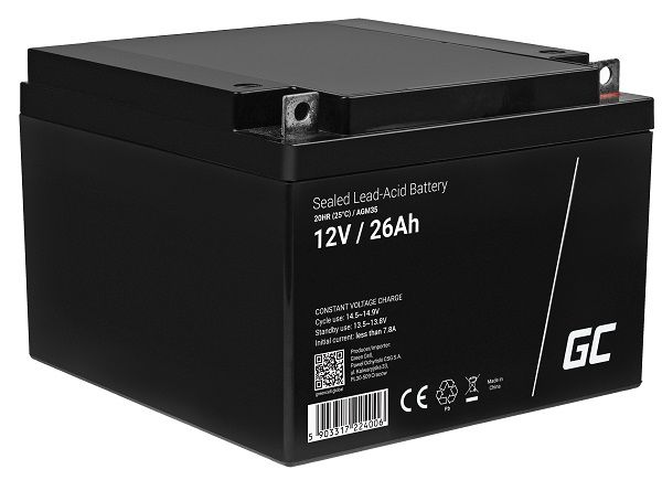 Green Cell AGM VRLA 12V 26Ah maintenance-free battery for mower, scooter, boat, wheelchair