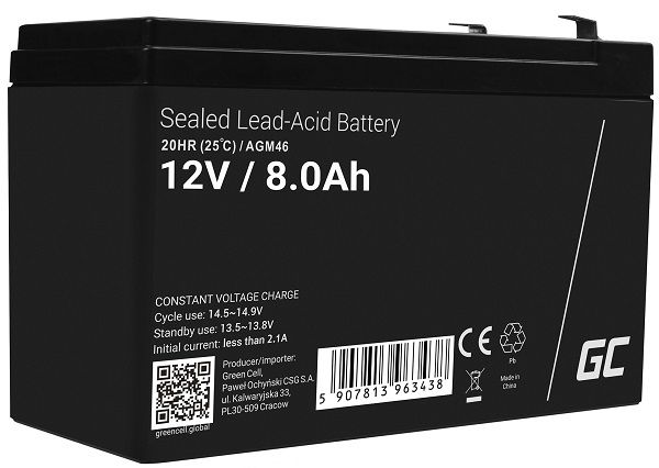 Green Cell AGM VRLA 12V 8Ah maintenance-free battery for the alarm system, cash register,