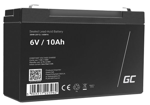 Green Cell AGM VRLA 6V 10Ah maintenance-free battery for the alarm system, cash register,