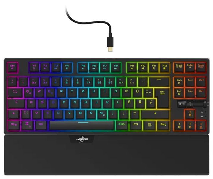 Hama uRage Exodus 860Prémiová kompaktní mechanická klávesnice pro každého vášnivého hráče. Díky spínačům Outemu Red nabízí výbornou odezvu a výdrž přes 50 milionů stisků. Špičkové pohodlí zajistí odnímatelná opěrka dlaní. Klávesy jsou RGB podsvícené a nabízí možnost vlastního nastavení. Tato nastavení pro různé hry a uživatele včetně světelných efektů lze následně uložit do integrované paměti. Samozřejmě nechybí ani funkce Anti-Ghosting a herní režim, který umožňuje uzamknutí Windows klávesy. K dispozici je navíc také otočný regulátor hlasitosti a intenzity podsvícení. Připojení je realizováno skrze USB-C konektor.