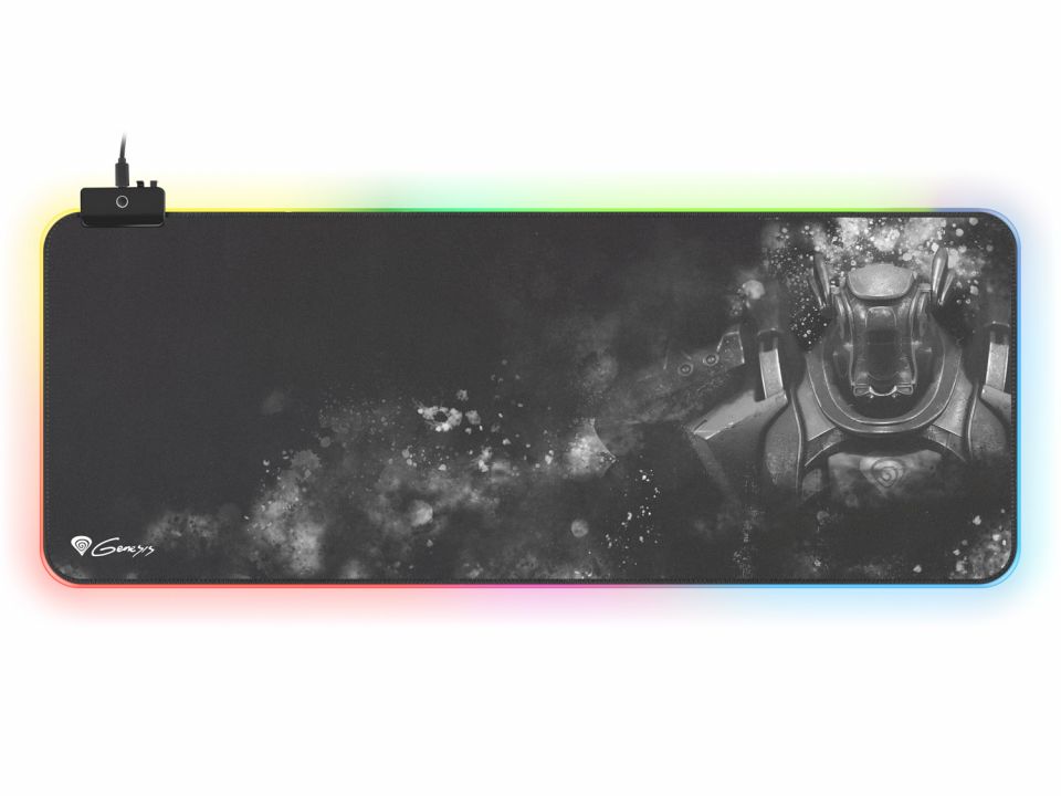 Podložka pod myš Genesis Boron 500 XXL obsahuje 7-barevné podsvícení okrajů, které efektně osvětlí váš herní stůl a umožní mu ještě více vyniknout. Díky tlačítku, které umožňuje přepínání mezi 11 režimy podsvícení si můžete zvolit ten nejoblíbenější a vytvořit tím jedinečnou atmosféru ve svém herním koutku. Unikátní grafika v pravé části, doplňuje její atraktivní vzhled, který jistě upoutá pozornost každého milovníka her.