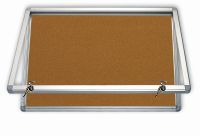 Informační interiérová vitrína s horizontálním otevíráním v pevném hliníkovém rámu.Sklo vyrobeno z odolného polykarbonátu.Určena pro použití uvnitř.Uzamykatelné dveře pomocí klasického patentního klíče. Záda z pozinkovaného plechu.Provedení výplně drcený korek.Montážní sada součástí balení (4 vruty a 4 hmoždinky)Hloubka vitríny - 5cmDotaz na produkt