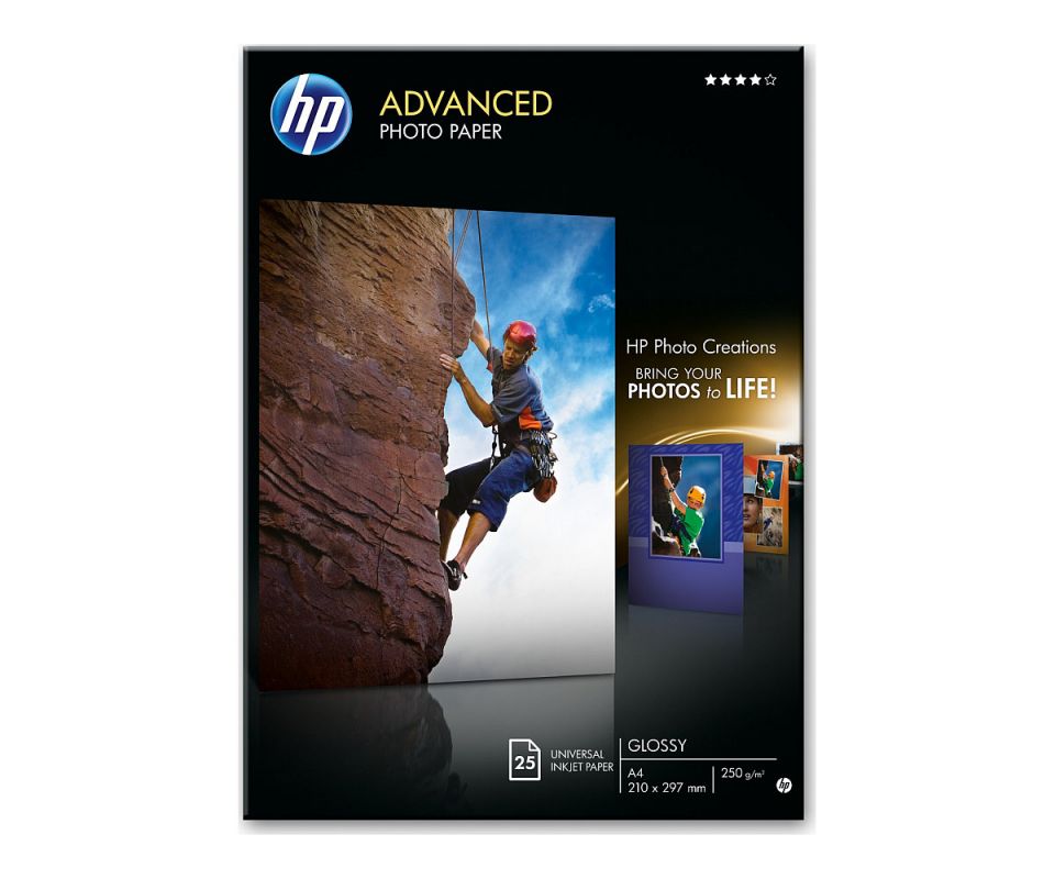 HP Advanced Glossy Photo Paper, foto papír, lesklý, zdokonalený, bílý, A4, 250 g/m2, 25 ks