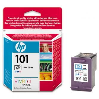 Modrá fotografická inkoustová tisková kazeta HP 101 poskytuje světle azurové, světle purpurové a modré inkousty HP Vivera pro tvorbu profesionálních fotografií. Vytvořte barevné fotografie studiové kvality s širokou paletou barev a bohatými odstíny modré, které budou odolávat blednutí po celé generace.Tiskněte profesionální fotografie s pozoruhodným modrým zabarvením (například fotografie krajiny a přímořské scenérie). Inkousty HP Vivera nabízejí širokou škálu barevných odstínů pro tisk detailů ve stínech, tónů a textury, které vyniknou na fotografiích studiové kvality.
