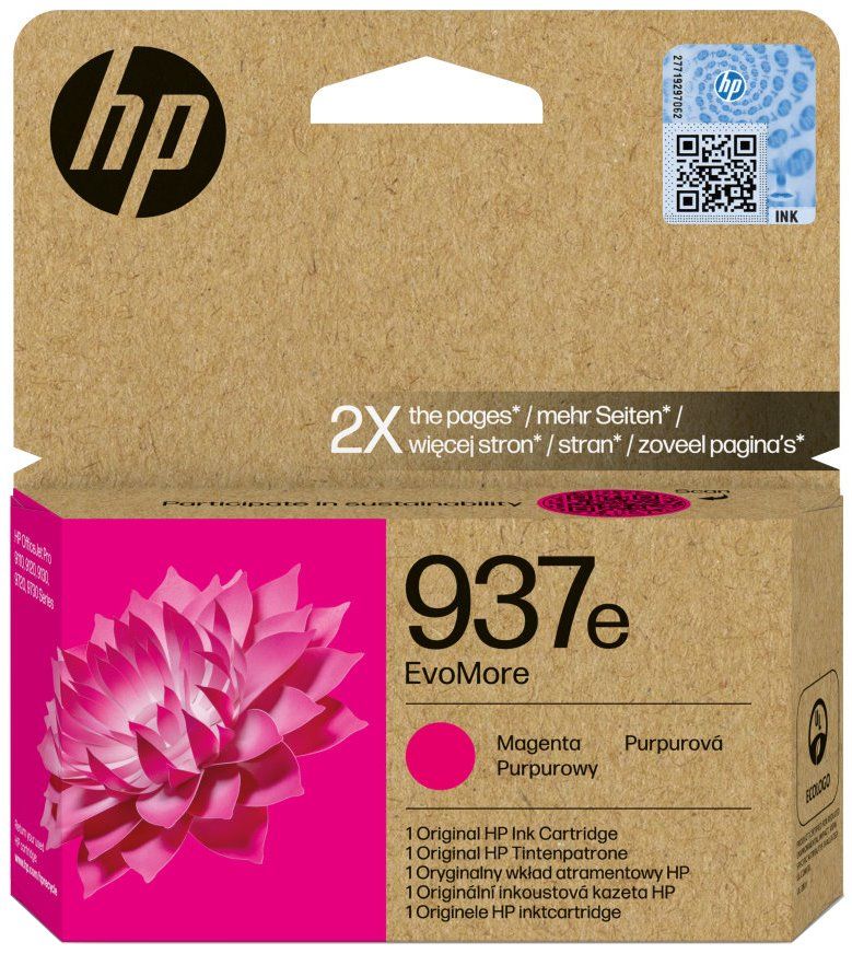 Inkoustová náplň HP 937e EvoMore purpurováOriginální inkoustové kazety HP EvoMore spojují legendární kvalitu s udržitelnějšími vlastnostmi a umožňují vytisknout dvojnásobný počet stran, oproti klasický kazetám, takže mají nižší uhlíkovou stopu. Jejich recyklace je bezplatná a snadná a díky aktivitám komunity EvoMore se i vy můžete podílet na obnově lesů. Balení inkoustů je vyrobeno nejméně z 90% z recyklovaných vláken a navíc je 100% recyklovatelné. Samotné kazety jsou vyrobeny z už recyklovaného materiálu. Pokud použité kazety HP EvoMore zdarma vrátíte v rámci programu HP Planet Partners, společnost HP je recykluje a vyrobí z nich kazety nové.