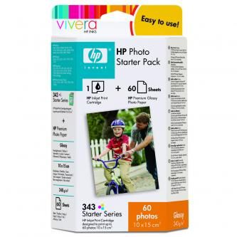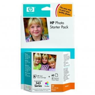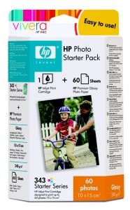 Fotograficka sada HP serie 343 hp photo starter pack (Q7948EE)obsahuje inkoustovou kazetu serie 343 pro 60 fotografii 10x15 a 60 listu fotopapiru hp premium photo paper, 240g, 10x15 cm.Specifikace: