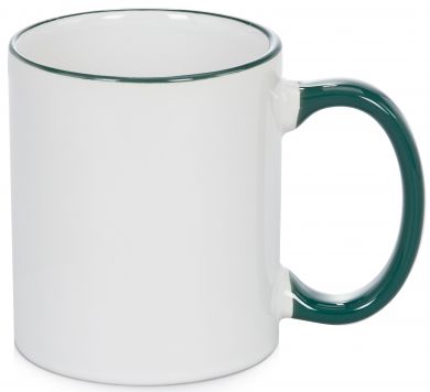 Hrnek bílý s zeleným lemem a uchem 64 Kč