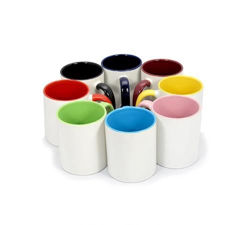 Keramický bílý hrnek s barevným vnitřkem a uchem pro sublimační potisk.Výška hrnku: 96 mmPrůměr hrnku: 82 mmObjem: 11 Oz / 325 mlParametry pro potisk:Aplikační teplota: 180oCČas: 20 vteřin ( výtisky z tiskáren Sawgrass a Ricoh )Specifikace: