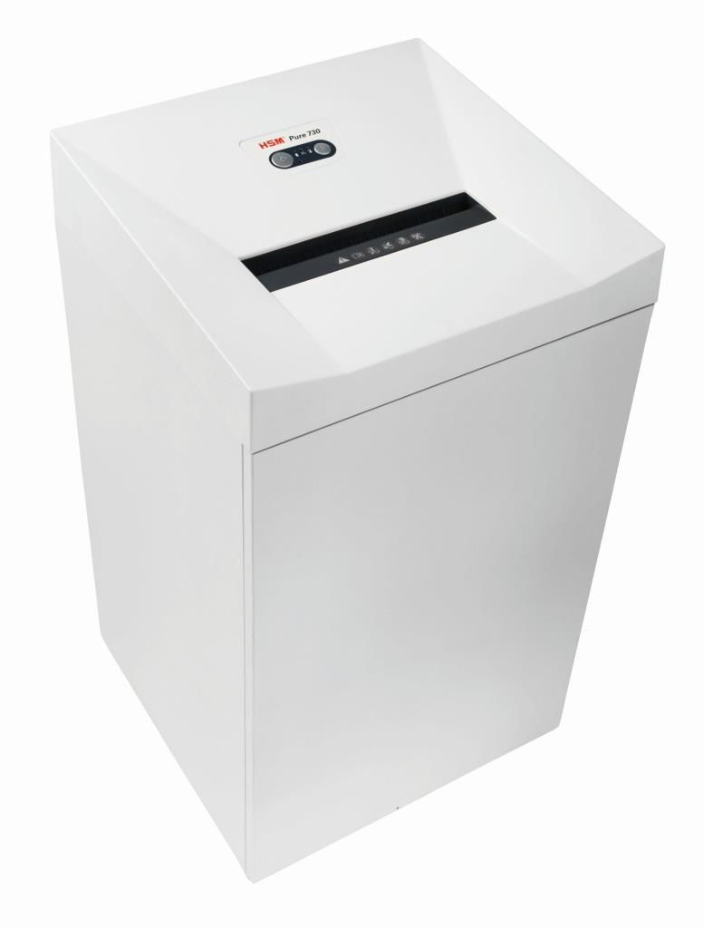 HSM Pure 740 je výkonný skartovací stroj s možností zpracování papírů formátu A3. Má zvýšený výkon, nože šířky 400 mm a zvětšený zásobník s objemem 145 l. Svými parametry vyhoví potřebám náročnějších uživatelů, kteří zpracovávají velká množství papírů různých formátů. Stejně jako ostatní stroje řady PURE byl vyvinut v souladu s nejnovějšími trendy v kancelářské technice. Je tichý, spolehlivý, plně automatický, s důrazem na úsporu elektrické energie dle zásad EMCS. Stroj má ve všech řezech automatický zpětný chod při zahlcení nožů. Jednoduché ovládání zajišťuje multifunkční, je vybaveno indikací plného zásobníku, zahlcení nožů, otevřeného zásobníku a STAND-BY režimu. Pro případ potřeby manuálního spuštění zpětného chodu je stroj vybaven odděleným tlačítkem. Kryt u vstupního otvoru je vybaven bezpečnostním dotykovým spínačem. Stroje v řezech 3,9 mm, 5,8 mm a 4,5x30 mm umožňují skartování CD. Zvětšený zásobník na skartovaný papír objemu 145 l je vybaven závěsem na plastové pytle, má průzor na jednoduchou kontrolu naplnění. Pro potřebu separace odpadu při skartování plastových karet nebo CD/DVD se pod skartovací hlavou nasunuje speciální tkaninový vak. Skartovač je vybaven otočnými pojezdovými kolečky.Stupně utajení dle GDPR: P-2 / O-2 / T-2 / E-2Specifikace: