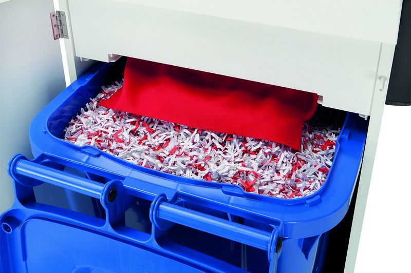 Silný velkokapacitní skartovač dokumentů s prostorem pro 240 litrovou odpadní nádobu. Robustní drtič má výkonnou řezací jednotku s širokým vstupním otvorem pro formáty do DIN A3.240 l odpadní nádoba podle s DIN EN 840 lze integrovat jako sběrný kontejner, což umožňuje jednoduché a pohodlné vyprázdnění koše.Rozměry odpadní nádoby (Š x H x V): 580 +/- 5 x 740 x 1100 mm ( odpadní nádoba není součástí dodávky)Dodávaný rozdělovač částic lze vložit do vodící lišty. Při vyjmutí koše rozdělovač částic vyrovnává řezaný materiál a zajišťuje, že žádné částice nevypadnou.Vysoce kvalitní dřevěná skříň se zesílenými dveřmi a ocelovou nákladní lištou proti opotřebení spodní hrany.Optický displej a funkce vypnutí, pokud je zásobník plnýVýkonný motor pro nepřetržitý provozTichý provoz minimalizuje hluk na pracovištiNízká spotřeba energie v pohotovostním režimuExterní zásobník na olej zajišťuje trvale vysoký výkon řezného ústrojíPodávání papíru s ochranou proti přetížení snižuje zasekávání papíruPřístroj se automaticky vypne, ve chvíli, kdy je aplikován příliš velký tlak na bezpečnostní prvekSvětelná závora pro automatický start / stopOptimální stabilita díky klouzavým nohámPohodlné vyjmutí a vyprázdnění sběrného vakuObsah dodávky:- Opakovaně použitelné odpadní sáčky (5 ks), speciální- Mazací olej (250 ml), - Rozdělovač částic k rozptýlení skartovaného materiáluSpecifikace: