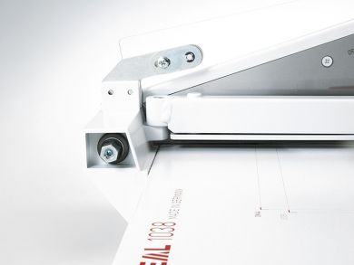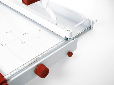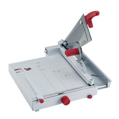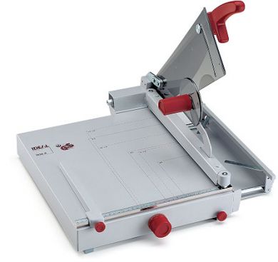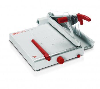 Tato řezačka byla nahrazena novým typem IDEAL 1138Vysoce kvalitní řezačka s délkou 385 mm s brousitelným nebo vyměnitelným, vysoce kvalitním nožem vyrobeným ze ”Solingen oceli”, ruční robusní přítlak s variabilním tlakem, přední doraz pro jednoduší opakování řezu s přesností na mm, postraní lišta s měřítkem v mm/palcích, standardní velikosti papíru předtištěny na ploše řezačky, automatický ochranný kryt nože vyroben z transparentního nezničitelného plexi, Lexan®, robustní celokovová konstrukce.Precizní pákové řezačky kompletně vybavené předním, zadním i bočním dorazem. Zařízení pro tenký řez umožňuje nejtenší řez od 1 – 10 mm. Pomocí ručního ovladače lze nastavit požadovanou míru na milimetr přesně. Řezačky jsou vybaveny automatickou ochranou nože ktera se zvedá a klesá s pohybem nože.Dotaz na produkt