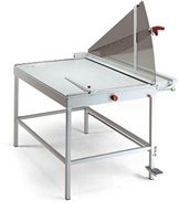 pravý stůl, ruční ovladač nastavení odměru. Kvalitním nožem lze řezat