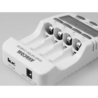 Inteligentní čtyřkanálová nabíječka tužkových AA a mikrotužkových AAA baterií. Nabíjí Ni-MH a Ni-Cd baterie. Nabíjecí proud 200, 500, 700 a 1000mA.XXX Nabíječka baterií AVACOM JVL-505