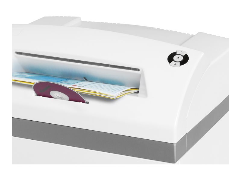 Skartuje papír, CD, DVD, floppy disky, kancelářské sponky i kreditní karty