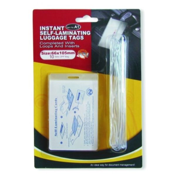 Jmenovka o velikosti 66x105 mm se vytvoří za studena vlepením identifikačního štítku do předpřipravené kapsy. Jmenovka má na okraji otvor pro uchycení. Balení 10 ks, obsahuje smyčky pro upevnění na kufr nebo zavazadlo.Dotaz na produkt