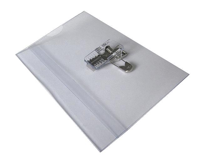 Visačka z pevného čirého PVC s klipsem, zapínacím špendlíkem a papírem uvnitř. Rozměr 56x92mm. Baleno po 50 kusech.Specifikace: