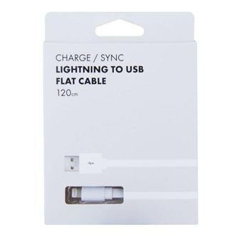 Datový a nabíjecí kabel s konektorem Lightning. Umožňuje přenášet data mezi Mac/PC a iPhonem, iPadem nebo iPodem. Délka kabelu je 120 cm. Plochý profil kabelu zamezuje zamotávání.