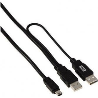 Kabel USB (2.0) - 2x USB A M - miniUSB M (5pin) - 1.8m, černýUSB kabel 2x USB A (M) - miniUSB 5pin (M). Kabel slouží například pro posílení napájení zařízení s konektorem miniUSB.