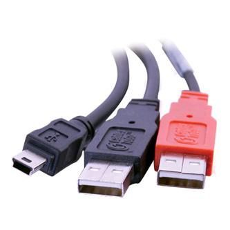 Kabel USB (2.0) - 2x USB A M - miniUSB M (5pin) - 1.8m, černý, LOGO blistrUSB kabel 2x USB A (M) - miniUSB 5pin (M). Kabel slouží například pro posílení napájení zařízení s konektorem miniUSB.