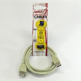 Kabel USB (2.0), USB A M- USB A F, 1.8m, černý, LOGO