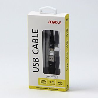 Kabel USB (2.0), USB A M- USB C M, 1m, 480 Mb/s, 5V/3A, černý, Logo, box, nylonové opleten 166 Kč
