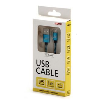 Kabel USB (2.0), USB A M- USB micro B M, 1m, 480 Mb/s, 5V/2A, modrý, Logo, box, nylonové o 46 Kč