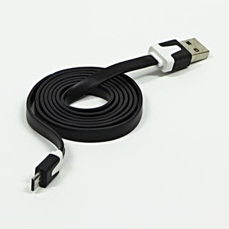 Kabel USB (2.0), USB A M- USB micro M, 1m, plochý, černý
